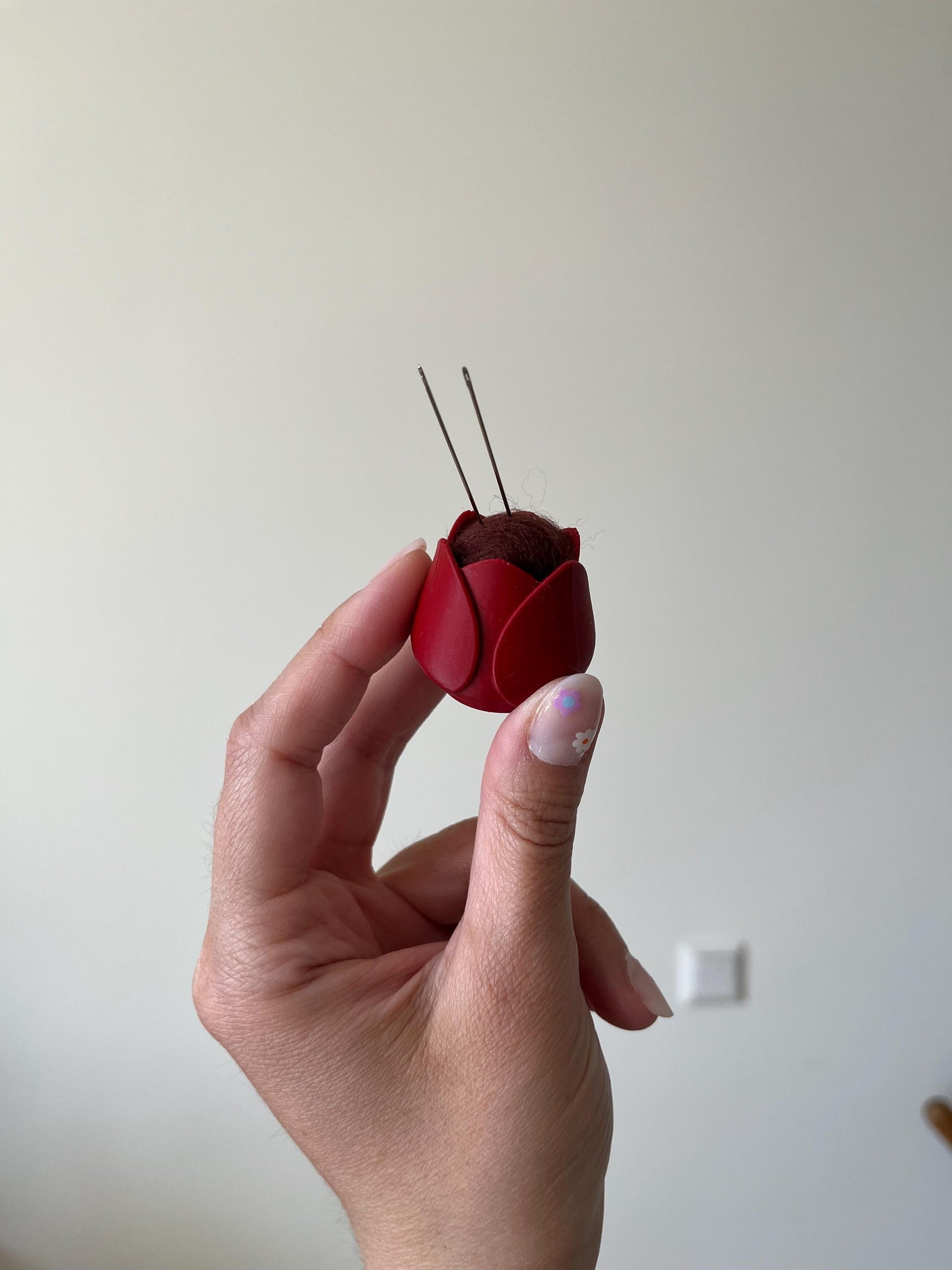 Tulip needle cushions in different colours! The tulips have been designed and 3d printed and on the inside there is merino wool. These tulips are ideal to place your pins and needles so you won't lose them! They are very cute and their size is 3-4 cm approximately.